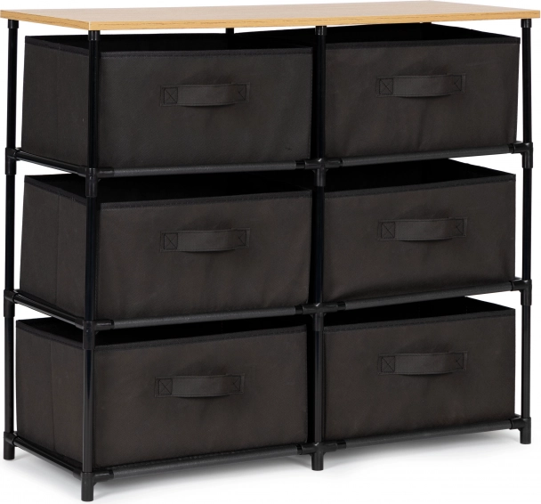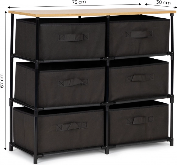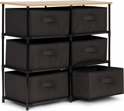 Široké možnosti organizace nabízí šest vyjímatelných košů, které jsou vyrobeny z odolného materiálu. Skříňka je ideální pro ukládání oblečení, doplňků nebo knih.