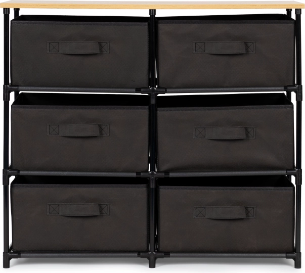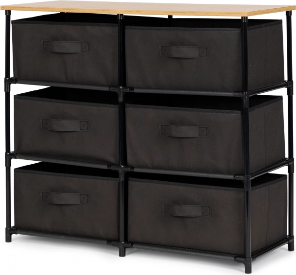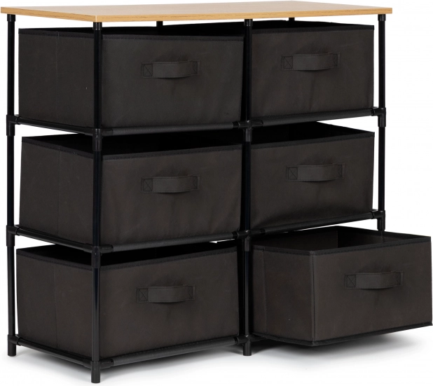 Šest prostorných textilních šuplíků poskytuje flexibilní úložné řešení pro různé potřeby.