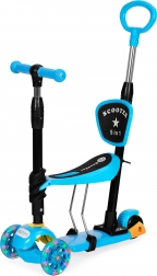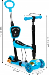 Koloběžka je vybavena nastavitelnou rukojetí pro rodiče, což je ideální při procházkách s nejmladšími dětmi. Díky LED kolečkám je jízda zábavná i za tmy, a speciální protiskluzová platforma zvyšuje stabilitu a bezpečnost.