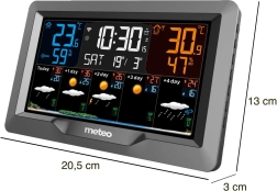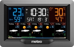 Chytrá meteorologická stanice METEO SP101 s připojením Wi‑Fi umožní sledovat počasí odkudkoli přes aplikaci Smart Life (TUYA). Měří vnitřní i venkovní teplotu a vlhkost, má paměť min./max. hodnot, předpověď počasí na 5 dní z internetu, UV indikátor, budík se snooze a lze ji postavit nebo zavěsit na zeď.