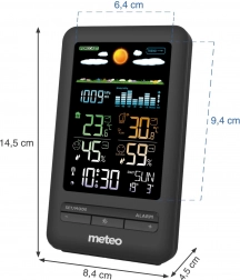 Chytrá meteostanice METEO SP103 s bezdrátovým senzorem měří vnitřní i venkovní teplotu a vlhkost, disponuje barometrem s grafem změn tlaku, předpovědí počasí pomocí piktogramů, ukazatelem komfortu a přesným DCF hodinovým signálem. Dosah senzoru až 60 m, alarm s funkcí snooze a možnost napájení ze sítě.