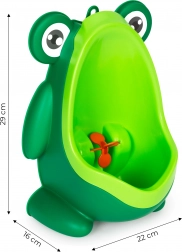 Tento dětský pisoár ve tvaru žabky promění nácvik na nočník v zábavu. Díky montáži na přísavky ho jednoduše připevníte na hladký povrch a snadno nastavíte výšku podle růstu dítěte. Vyjímatelná nádobka umožní rychlé vylití a opláchnutí, takže koupelna zůstává čistá.