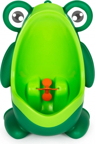 Zábavný žabí pisoár pro chlapce s praktickými přísavkami na zeď usnadní první kroky na toaletu. Má odnímatelnou nádobku pro snadné čištění, otáčecí terčík pro trénink míření a pevné uchycení bez vrtání. Ideální pomocník pro učení samostatnosti a čistotu v koupelně.