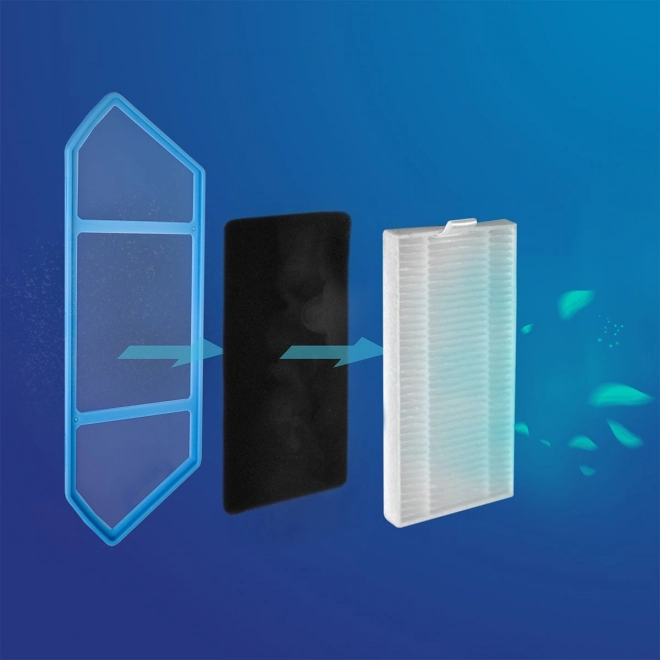 Je vybaven 3-stupňovým systémem filtrace vzduchu s filtrem HEPA 13, který odstraňuje 99,97 % velmi malých částic, jako jsou viry, bakterie, pyly a prach.