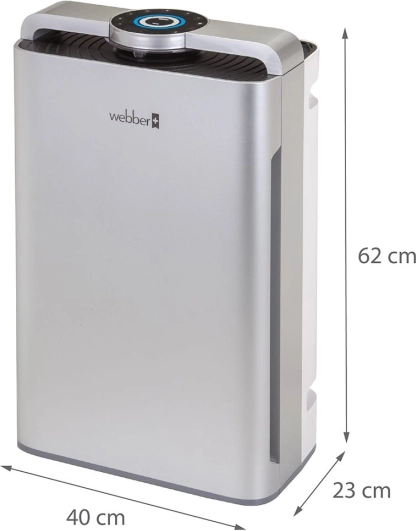 Webber AP9700 Wi-Fi čistička vzduchu je navržena pro efektivní odstranění až 99,97 % velmi jemných částic PM2.5, virů, bakterií, pylu, prachu a zvířecích chlupů pomocí HEPA 13 filtru, což zaručuje dokonale čistý vzduch ve vašem domě.