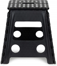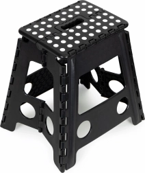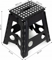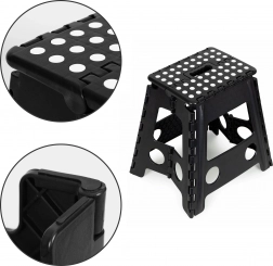 Bezpečnost je na prvním místě - díky protiskluzovým nohám a gumovým prvkům na plošině se nemusíte obávat uklouznutí. Skládací design umožňuje snadné uskladnění a přenášení, což šetří místo a zajišťuje komfortní manipulaci.