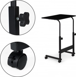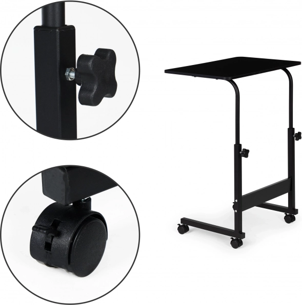 Nastavitelná výška (62,5 - 83 cm) zajišťuje pohodlí bez ohledu na místo, kde jej použijete. Stolek je vybaven kovovou konstrukcí a MDF deskou, která je snadno omyvatelná a odolná vůči skvrnám.