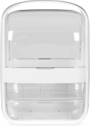 Organizér je vyroben z odolného, snadno omyvatelného plastu, který je vhodný do koupelny i na toaletní stolek. Průhledné čelo zásuvek i víko umožňují rychle najít, co potřebujete, bez zdlouhavého prohledávání. Díky kompaktním rozměrům se bez problémů vejde na poličku, komodu či vedle umyvadla.