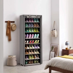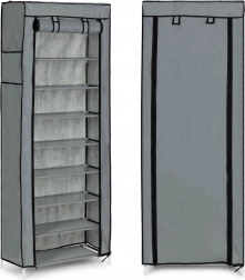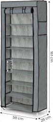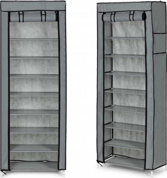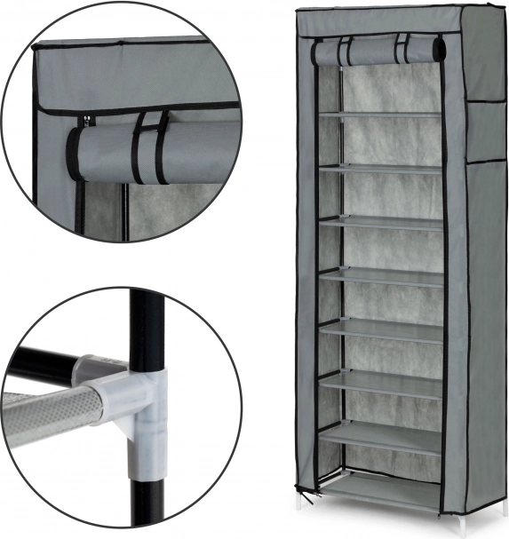 Stabilní rám z kovových trubek s plastovými spojkami zajišťuje pevnost celé konstrukce. Police z odolného textilu jsou napnuté mezi trubkami, což přidává na tuhosti a dovoluje pohodlné a přehledné ukládání. Díky vzdálenosti mezi policemi cca 15 cm snadno uspořádáte oblečení i obuv.