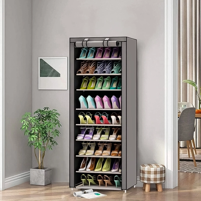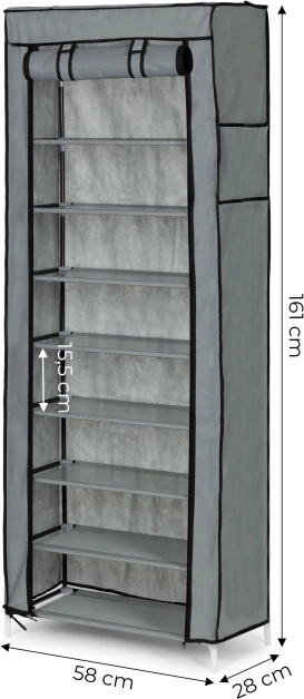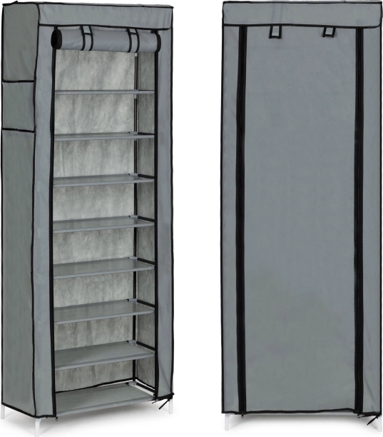 Tato textilní skříň je ideální řešení pro ložnici, předsíň i koupelnu. Vícepatrový systém polic poskytuje dostatek prostoru pro trička, svetry, kabelky i boty, zatímco rolovací clona na zip chrání obsah před prachem a vlhkostí a umožňuje rychlý přístup k uloženým věcem.