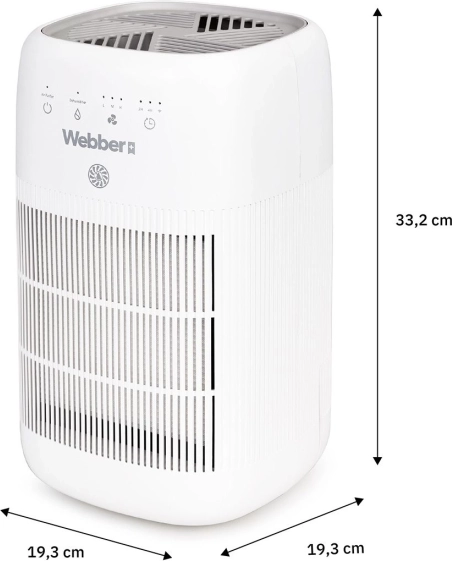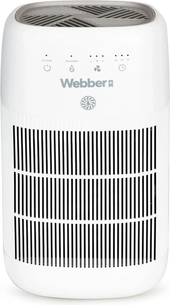 Webber odvlhčovač a čistička vzduchu kombinuje moderní technologii PureAir s účinným odvlhčováním, takže v interiéru snižuje vlhkost, omezuje vznik plísní i rosení oken a zároveň filtruje prach, alergeny a zápachy. Tříúrovňová filtrace (předfiltr, uhlíkový filtr a HEPA 13) zachytí až 99,97 % částic od 0,3 µm – ideální řešení pro alergiky a rodiny s dětmi.