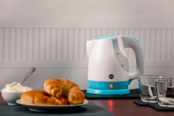 Praktické detaily dělají z této konvice spolehlivého pomocníka: sklopné víko pro snadné napouštění, jemné sítko proti usazeninám vodního kamene a světelná kontrolka, která informuje o provozu. Otočná 360° základna se skrytým topným tělesem (plotýnkou) a prostorem pro kabel zajistí pohodlné použití i úsporu místa.