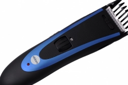 Hladký a přesný střih zajišťují odolné břity a praktický teleskopický nástavec, se kterým snadno nastavíte délku v rozsahu 3–18 mm až ve 24 krocích. Pro kratší zastřižení lze nástavec sejmout. U hustých vlasů pomůže aretační kryt, který brání podjíždění vlasů pod střihací hlavu.