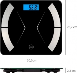 Tato váha je vyrobena z 4 mm silného tvrzeného skla, díky čemuž zvládne zatížení až 180 kg. Přesný měřicí systém zaručuje měřící přesnost 50g a protiskluzové podložky zajišťují stabilitu při používání.