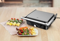 Připravujte šťavnaté steaky v režimu kontaktního grilu nebo otevřete desky na 180° a získejte velkou rovnou grilovací plochu pro zeleninu, ryby či špízy.