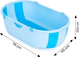 Robustní rám a zpevněné plastové prvky zajišťují stabilitu, integrované postranní rukojeti usnadňují přenášení i držení při koupání. Hladký povrch se snadno čistí a je příjemný k jemné dětské pokožce. Vanička má certifikaci CE a je vhodná pro každodenní použití.