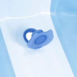 Měkký gumový špunt bez ostrých hran se snadno vytahuje a při příliš horké vodě zbělá. Koupání je tak bezpečnější a pohodlnější.