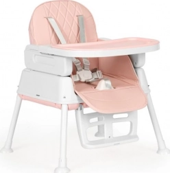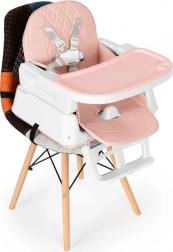 ECOTOYS 3v1 je promyšlená jídelní židlička, která roste s vaším dítětem. Z vysoké židličky ji snadno přeměníte na nízké sezení nebo ji pomocí popruhů bezpečně připevníte na běžnou jídelní židli. Moderní design, pevná konstrukce a protiskluzové patky zajišťují bezpečí i pohodlí při každém jídle.