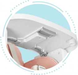 Rodiče ocení ergonomický dvouvrstvý tác s nastavením vzdálenosti, který brání padání jídla na zem, a také odnímatelný potah z eko kůže pro rychlou údržbu. 5bodový pás a zámek proti podsunutí chrání dítě v každé konfiguraci. Součástí je i odnímatelná opěrka nohou pro správné a pohodlné sezení.