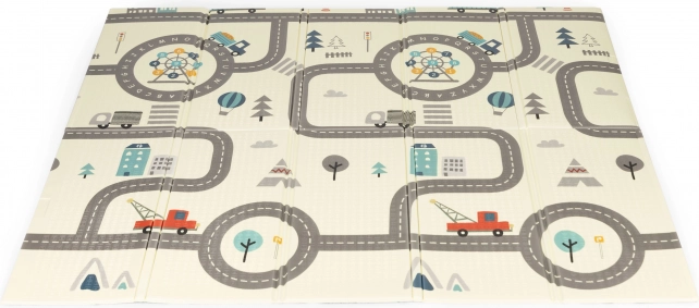 Podložka je skládací, lehká a jednoduše se čistí, takže ji snadno sbalíte do přiložené přepravní tašky a vezmete s sebou na návštěvu či dovolenou. Kvalitní pěna tlumí nárazy a podporuje rozvoj jemné i hrubé motoriky – od stavění kostek po jízdu autíčky.