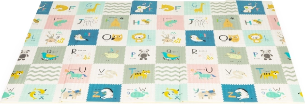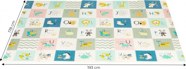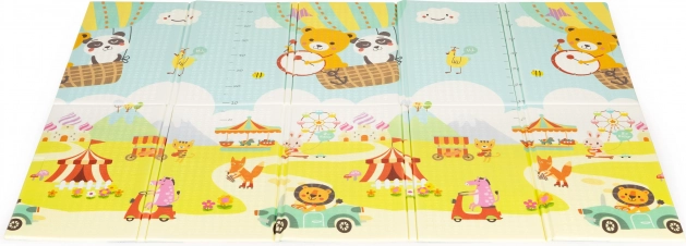 Oboustranný potisk přináší dvojitou porci zábavy: z jedné strany cirkus se zvířátky, dopravními prostředky a atrakcemi, z druhé strany abeceda a názvy zvířat pro hravou výuku. Podložku snadno složíte do kompaktního balíčku a uložíte do přiložené tašky – ideální na doma, k babičce i na cesty.
