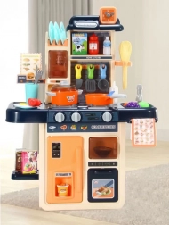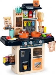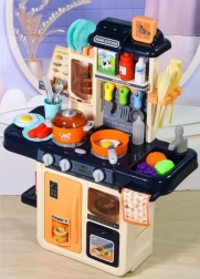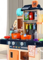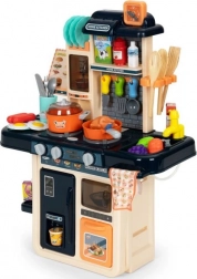 Tato moderní kuchyňka pro děti nabídne vše, co je potřeba k vaření „jako doopravdy“. Po zapnutí hořáků se ozývá zvuk vařící vody a rozsvítí se červené LED. Jedinečný parní generátor vytvoří jemnou páru – stačí nalít vodu do hořáku, přikrýt hrncem a kouzlo může začít. Dřez s vodním dávkovačem umožní reálně „pouštět“ vodu z kohoutku.
