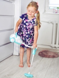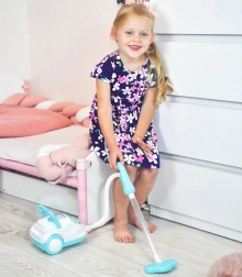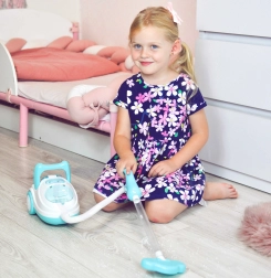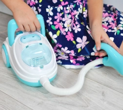 Tento modro-bílý dětský vysavač věrně napodobuje skutečný spotřebič – po zapnutí svítí, vydává realistické zvuky a díky funkci sání zvládne nasát i přiložené polystyrenové kuličky. Je skvělý pro role-play, podporuje zodpovědnost a hravou formou učí děti udržovat pořádek.