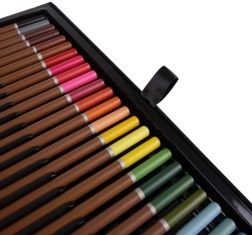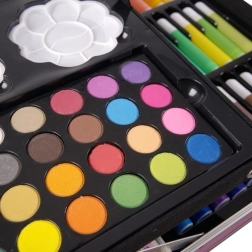 Obsah sady je navržen tak, aby pokryl různé techniky – od jemného skicování přes výrazné linky fixami až po krycí akrylovou malbu či lehké akvarelové přechody. Díky pevnému kufříku s kovovými výztuhami a uzávěry je přenášení bezpečné a pohodlné, ať už doma, ve škole nebo na cestách.