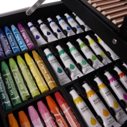 - Vše na jednom místě: 144 dílů včetně barev, pastelek, fixů, štětců a příslušenství.