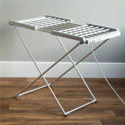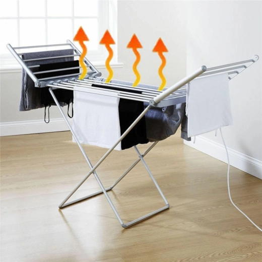 Už žádné čekání na suché prádlo. Tento elektrický skládací sušák s příkonem 230 W rovnoměrně prohřívá tyče na příjemných 45–55 °C, takže prádlo schne rychleji a šetrně – bez přesušení a bez nutnosti používat objemnou sušičku. V suchých dnech jej jednoduše používejte i bez napájení jako klasický sušák.