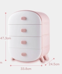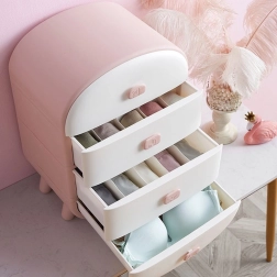 Zaoblené hrany, moderní design a jemná růžovo-bílá barva skvěle zapadnou do interiéru. Komoda je lehká, stabilní a snadno se udržuje – stačí otřít vlhkým hadříkem. Může posloužit i jako originální noční stolek či pomocník na toaletním stolku.