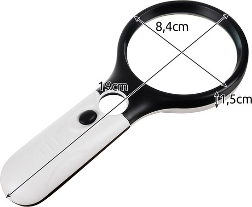 Vyrobena z odolných materiálů, dótečné specifikace zahrnují průměry čoček (větší s 70 mm, menší s 15 mm), napájena třemi AAA bateriemi (nejsou součástí balení) a váží jen 118 g. Tato lupa je také vynikající dárek pro starší osoby i děti — zatímco starším zjednoduší čtení, děti ji mohou využít k objevování přírodních detailů.