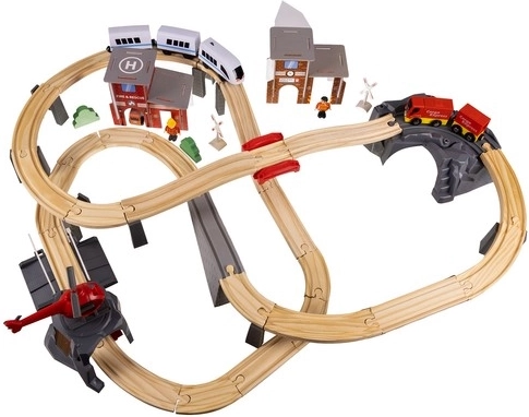 Kompletní set se vším, co děti potřebují: dlouhá trať, mosty, budovy, figurky, dopravní značky, vrtulník i nákladní vůz. Neustálé objevování a nové příběhy při každém hraní.