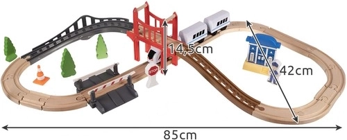 Tato dřevěná vláčková dráha je ideálním řešením pro podporu tvořivosti a fantazie u dětí. Je navržena tak, aby se děti mohly ponořit do světa železniční zábavy, a to v pohodlí domova nebo venku. Sada obsahuje celkem 37 precizně zpracovaných prvků, včetně mostu a budov, které dodávají realistické prvky k zábavě.