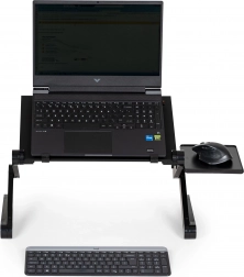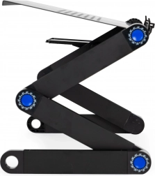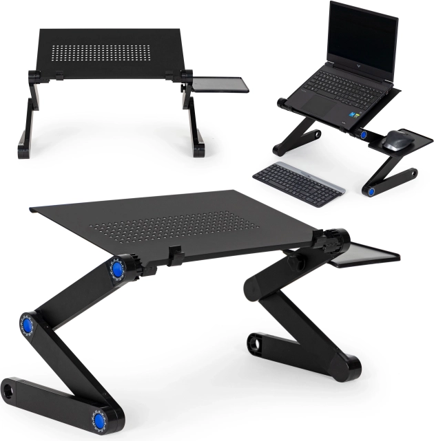 Kloubové nohy s vícebodovým nastavením umožní přesně přizpůsobit výšku i náklon tak, aby byl displej v ideální úrovni očí a ruce v přirozené poloze. Protiskluzové prvky udrží vše na místě i při intenzivním psaní. Stojan je skvělý pro práci s více monitory, videohovory i sledování filmů a díky skládací konstrukci se snadno přenáší.