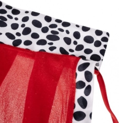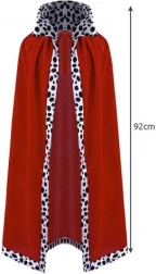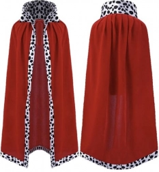 Červený plášť s černo-bílým „dalmatin“ lemem působí majestátně, je hebký na dotek a díky zavazování dobře drží na ramenou.