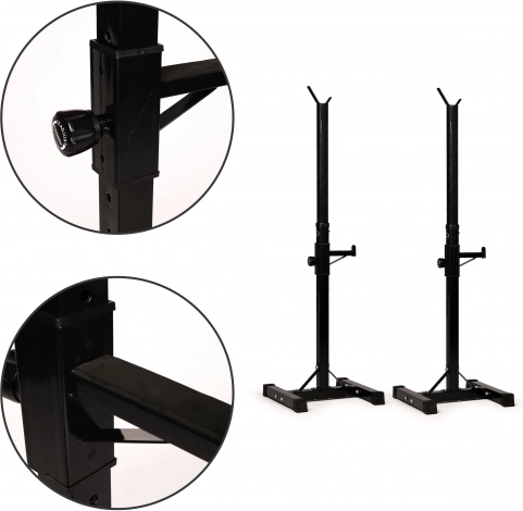 Na souboru z stojí bude bude dokonalý jako volně stojící podporuje pro provádění dřepů s bčinkami. Připevněné k b bench they can be used do položení dole při bčince při cvičení hrudníku.