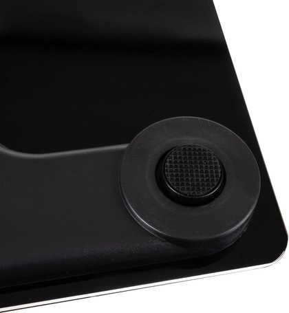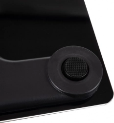 Stylová černá platforma z 0,3 cm tvrzeného skla unese až 180 kg a nabízí stabilní a bezpečné používání v koupelně.