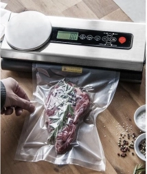 Digitální váha s rozsahem do 2 kg a krokem 1 g vám pomůže porce zvážit ještě před vakuováním – méně plýtvání a lepší organizace zásob.