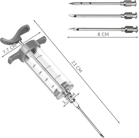 Tato kuchyňská injekční stříkačka je ideální pro domácí uzení, pečení i grilování. Umožňuje vstřikovat solný lák, vývary i marinády přímo do vláken masa, což výrazně zkracuje čas nakládání a zajišťuje rovnoměrné prosolení a dochucení. Průhledné tělo s ryskami v ml usnadňuje přesné dávkování.