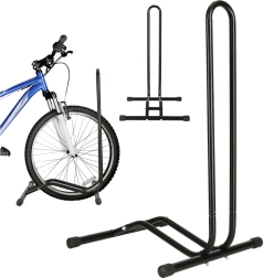 Stojan je kompatibilní s koly o průměru 16–27,5" a s plášti do šířky 6,5 cm. Dodává se jako snadno sestavitelná sada včetně šroubů a základního nářadí, takže jej rychle připravíte k použití.