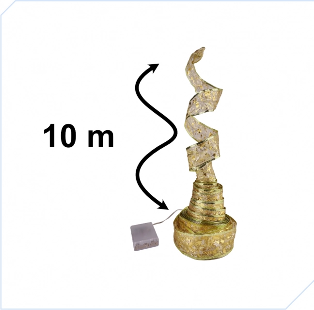 Naše zlatá LED stuha nabízí všestranné možnosti dekorace díky své elastičnosti a bateriovému napájení, které umožňuje stuhu umístit i na místa bez elektrického připojení.