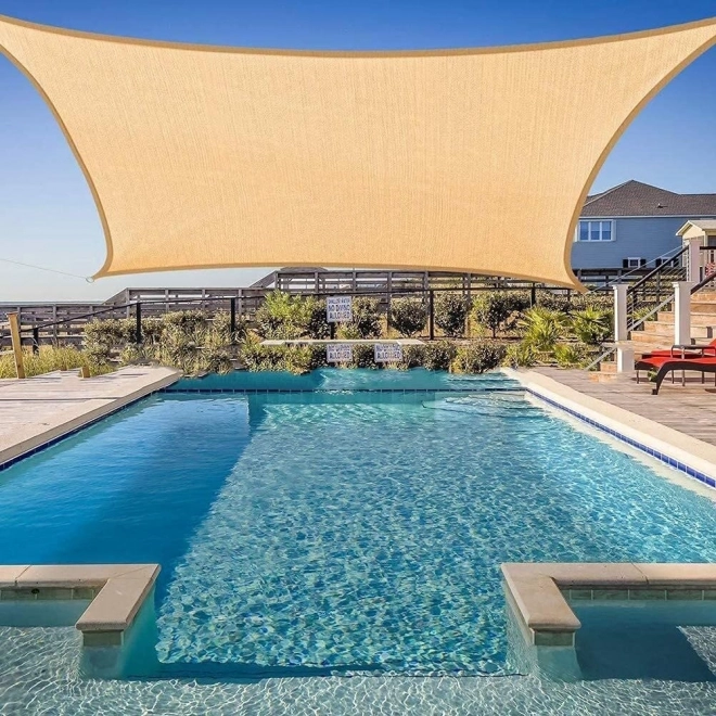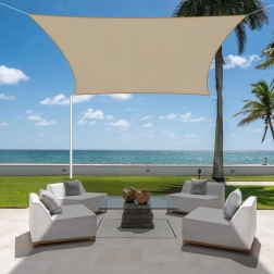 Užijte si příjemný chládek i v horkých dnech. Tato obdélníková stínová plachta 4 × 3 m v elegantní béžové barvě účinně snižuje teplotu pod plachtou a chrání před škodlivým UV zářením. Odolný polyester s gramáží 180 g/m² je voděodolný, rychle schne a odolává vlhkosti i plísním.