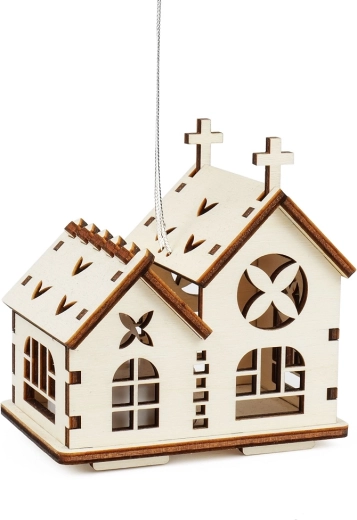 Stylová dřevěná dekorace v podobě dvojkostelíku přináší do interiéru útulnou atmosféru. Díky LED svíčce s vyměnitelnou 3V baterií krásně vynikne i ve večerních hodinách. Je připravená k okamžitému použití, vhodná na zavěšení i položení a vyrobená z kvalitního topolového dřeva se zdobnými vyřezávanými detaily.