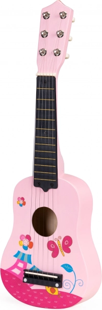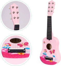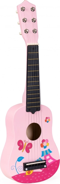 Dřevěná kytara pro děti značky ECOTOYS je určena pro děti od 3 let. Díky laditelným strunám děti mohou hraní naučit jednoduché i složitější písničky, a celá rodina může společně vystupovat v domácím prostředí. Hraní na kytaru pomáhá rozvíjet fantazii, jemnou motoriku a smysl pro rytmus.