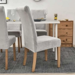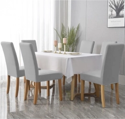 Šedý potah na židli je navržen tak, aby poskytoval ochranu před skvrnami a mechanickým poškozením. Vysoce elastický materiál zajišťuje univerzální rozměr, který se perfektně přizpůsobí většině židlí. Díky tomu je potah stabilní a pevně drží na místě.