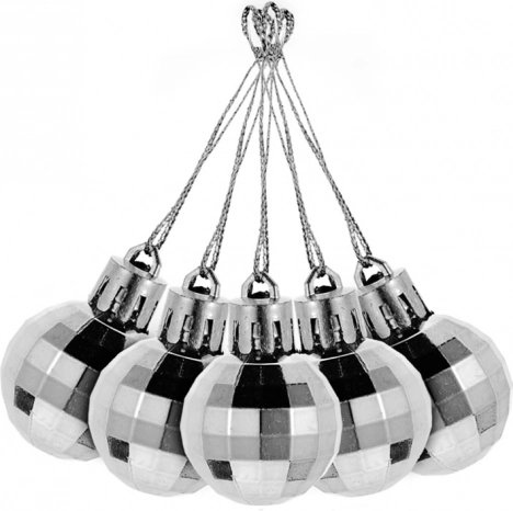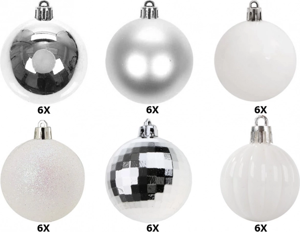 Sada obsahuje různorodé styly, které pokrývají vše od elegantních bílých až po třpytivé stříbrné disko koule.
