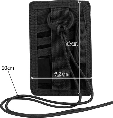 Praktické černé etui na průkazku, ID kartu a doklady kombinuje kompaktní rozměry s chytrou organizací. Přední část má průhledné okénko pro rychlé prokázání identity, zadní strana nabízí tři samostatné kapsy na karty a doklady. Díky odolnému materiálu Oxford, suchému zipu a nastavitelnému šňůrkovému závěsu na krk budete mít vše bezpečně a pohodlně po ruce.