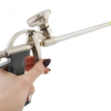 Spolehlivá pistole na PU pěnu pro montáže, utěsnění a izolace. Robustní kovová konstrukce zaručuje dlouhou životnost a stabilitu při práci, zatímco ergonomická rukojeť z plastu poskytuje jistý úchop a komfort i při delším používání. Díky dlouhé trysce snadno dosáhnete do spár a úzkých prostor.