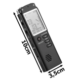 Diktafon je malý, lehký a snadno přenosný díky rozměrům 10 cm x 3,5 cm, což z něj činí ideálního společníka na cesty.
